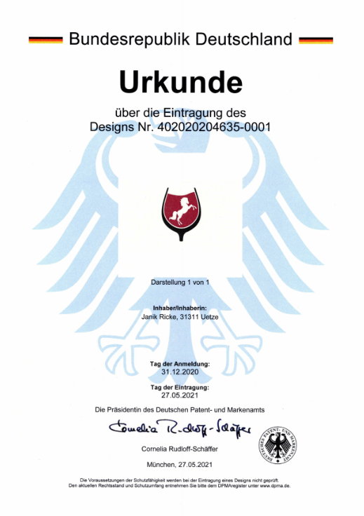 The logo is also registered as a design at the German Patent and Trademark Office. This allows us to ensure that our logo is not used for other products, even beyond our trademark.